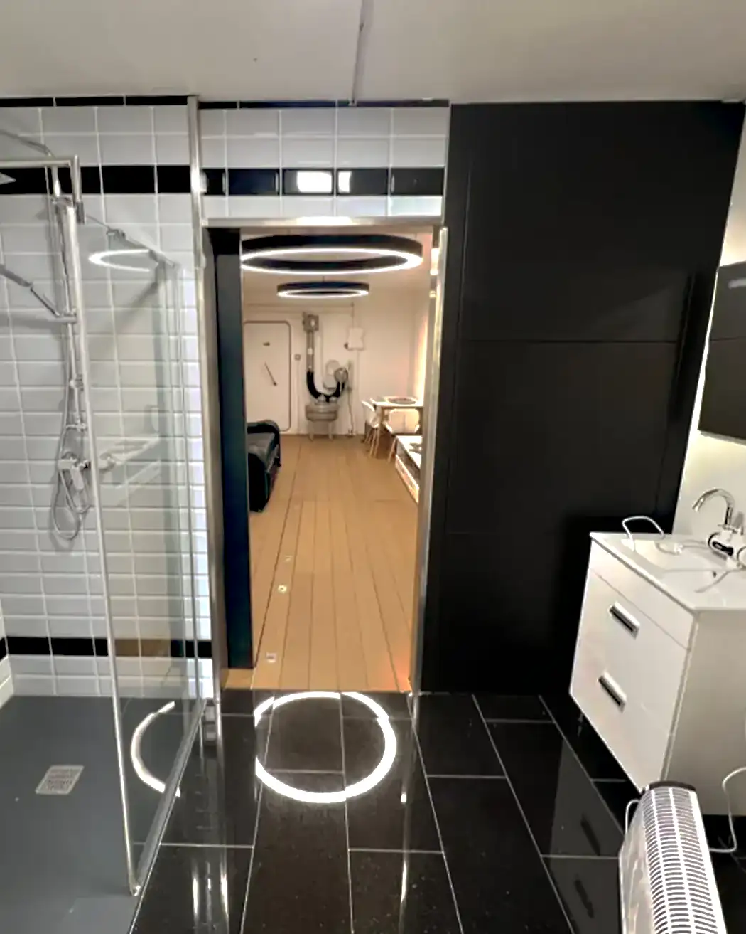 Outdated concrete boxes compromise morale, hygiene, and long-term habitability. Our approach pairs FEMA/ICC safety standards with livable design: layered lighting, low-VOC finishes, quiet ventilation, and ergonomic layouts that keep families calm, organized, and resilient.